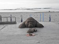 Memories come back to me from years ago, when I made a gorilla as if he were in the water showing an extended and open hand.