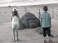 Memories come back to me from years ago, when I made a gorilla as if he were in the water showing an extended and open hand.